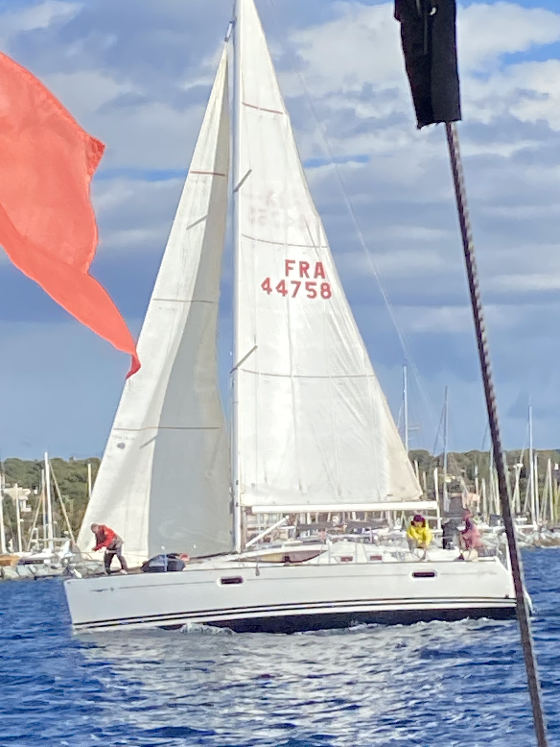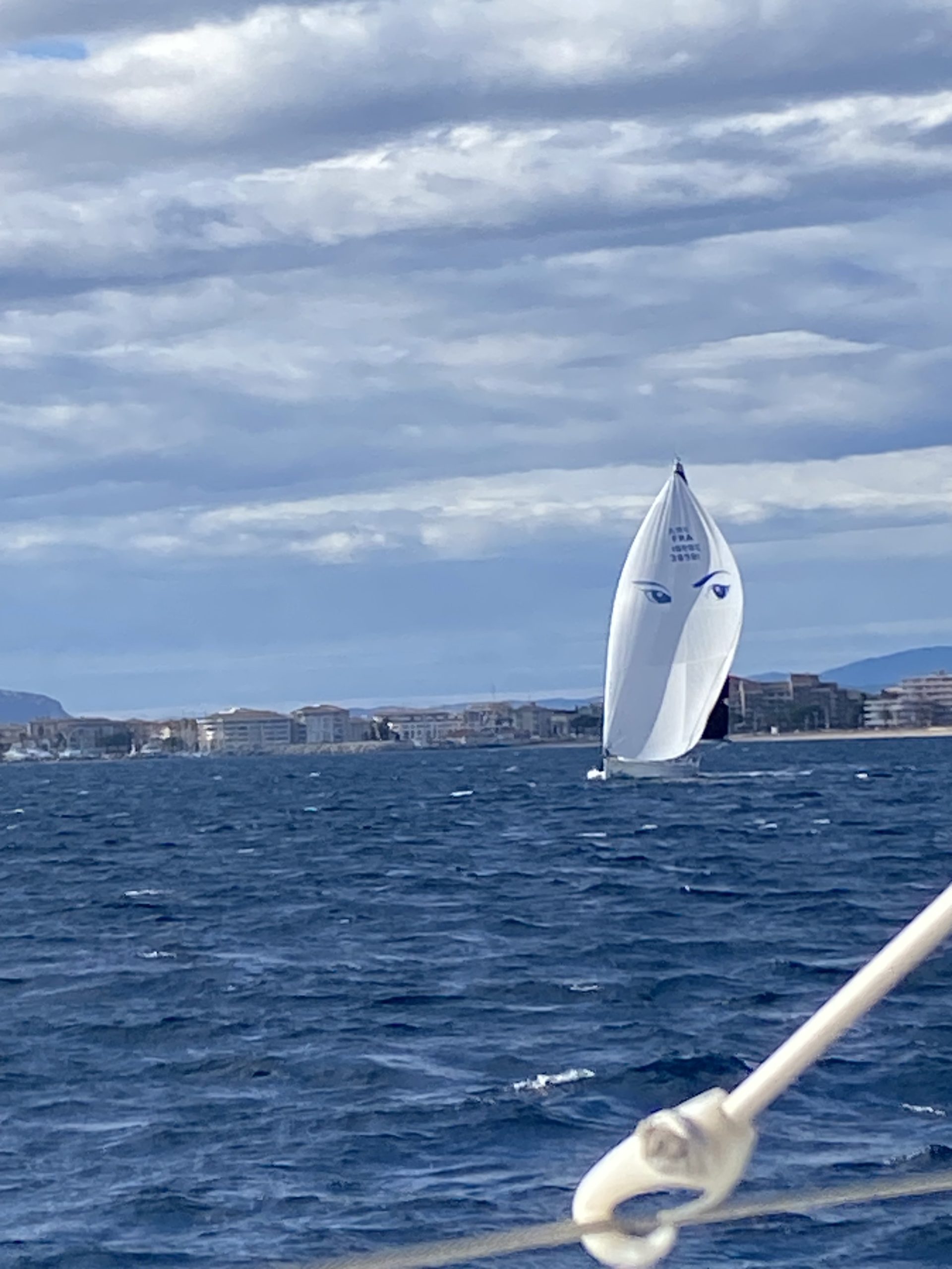 La météo a été nous pourrons dire presque parfaite et les prévisions relativement justes. Mais entre le briefing du samedi matin à la Rotonde accompagné du petit café/croissants, nous avons avec Mathieu Rigaud notre arbitre officiel FFV, donné un parcours qui s’est modifié sur le plan d’eau. En effet, la bascule de vent attendue n’a pas eu lieu. En cette période pré-hivernale et du fait de l’horaire réduite liée au changement d’heure, nous avons lancé le départ à l’heure à 13H00 précise.