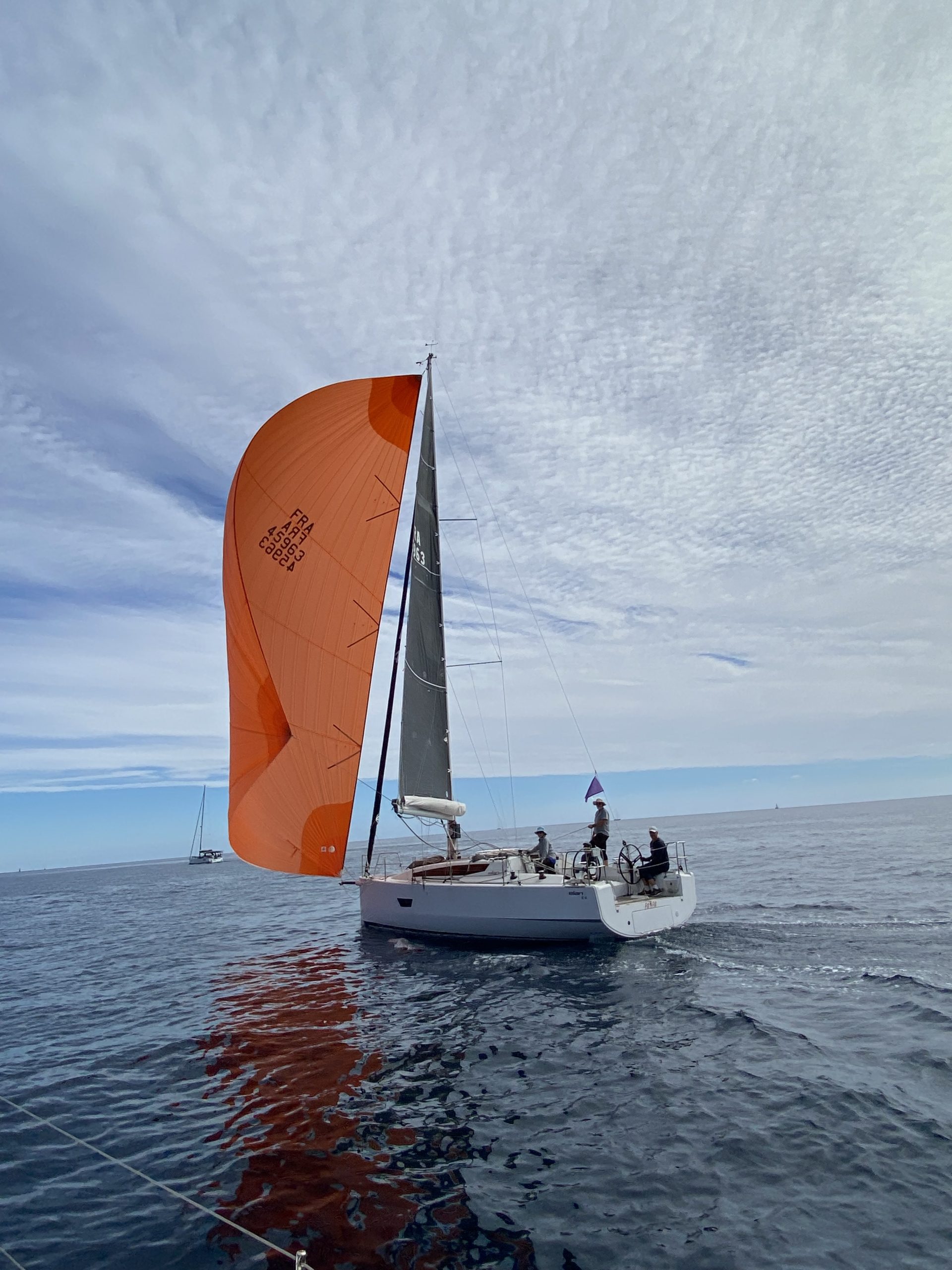 Une fois les agapes terminées, un bon vent bien présent, nous avons fait repartir la flotte à 14h40 pour une arrivée entre les 2 lions à 15H23 pour le premier Pili-Pili. Suivi d’Alyte, Seaway 3, Tornado, Maréa, The Last et Adax. Ile d’Arguin en comité à participer de loin mais a terminé 6ème. Belle manche avec un bon vent qui nous a permis de se mesurer sans l’aide du moteur. Ouf