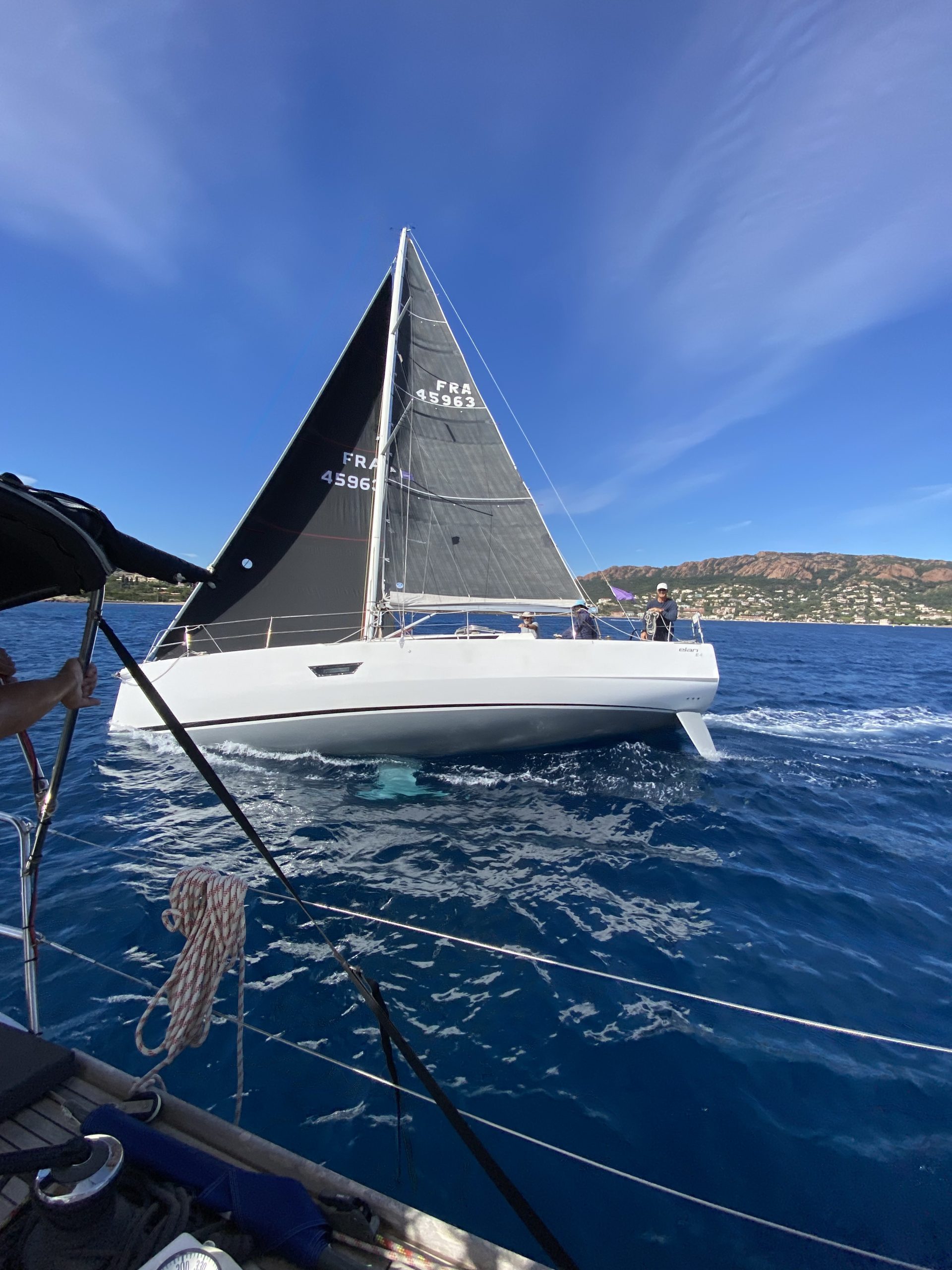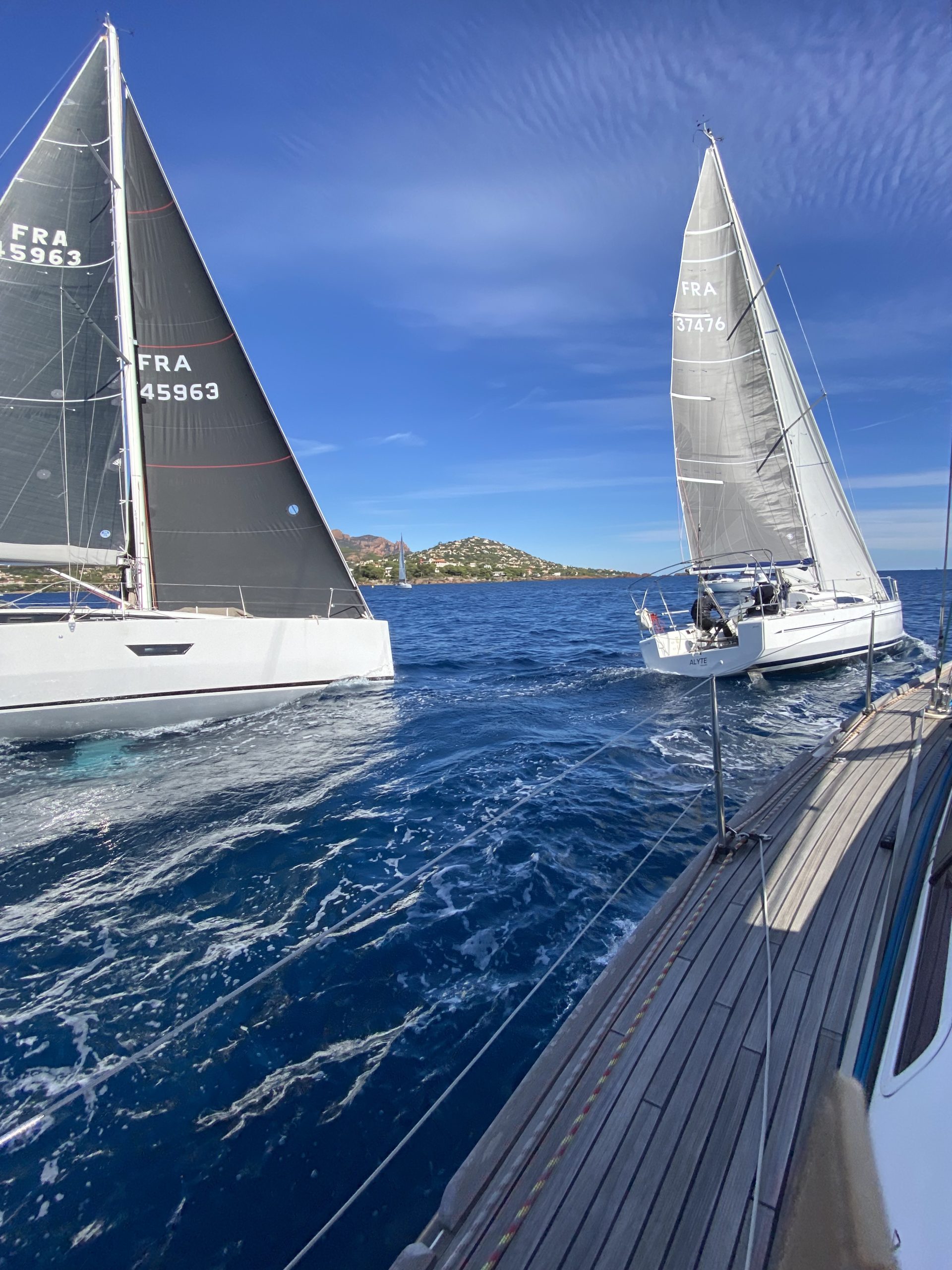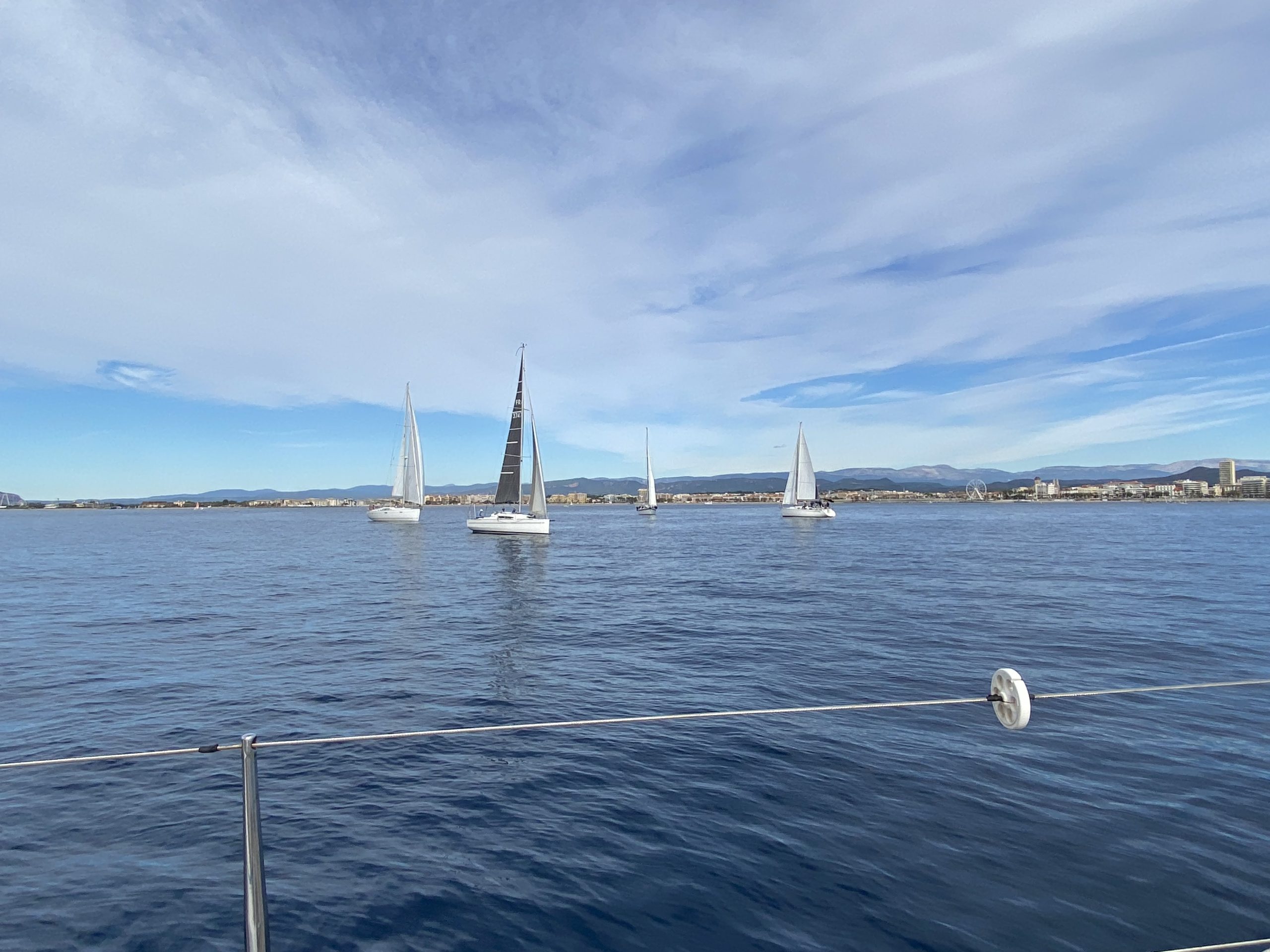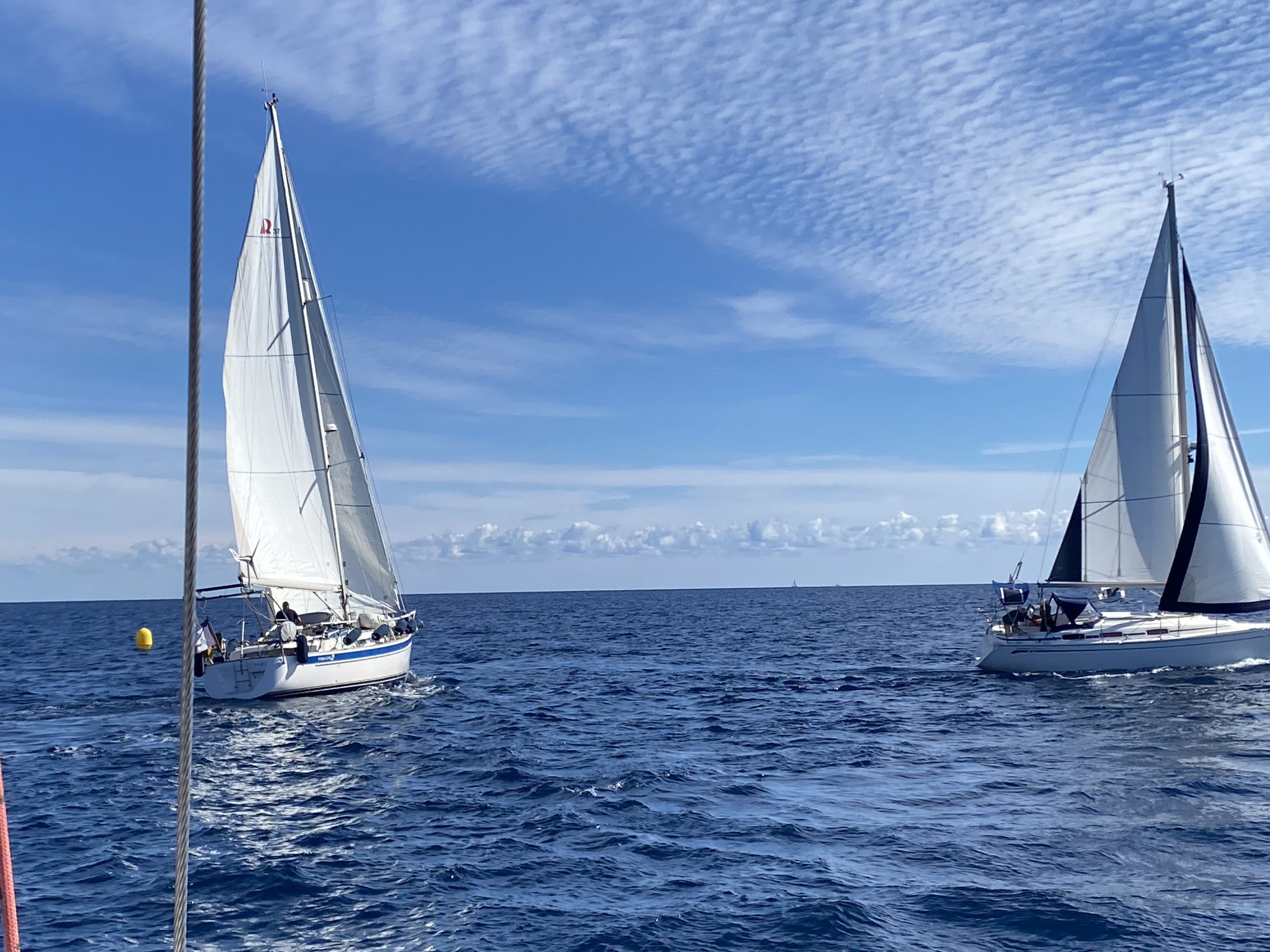 Ce ne fut pas le cas cette année. Un très beau temps le samedi pour la régate avec un départ sous « le soleil exactement » mais sans vent. Nous avons renoué avec la tradition du passé puisque nous nous sommes dirigés très tranquillement vers la rade d’Agay où les mouillages nous étaient personnellement réservés. Merci à la capitainerie de la rade pour leur accueil très sympathique. 9 bateaux inscrits, 1 DNS et pour cette première manche seul Pili-Pili est resté sous voiles hautes. Les autres ont dû s’accommoder du moteur pour arriver à l’heure au pique-nique.