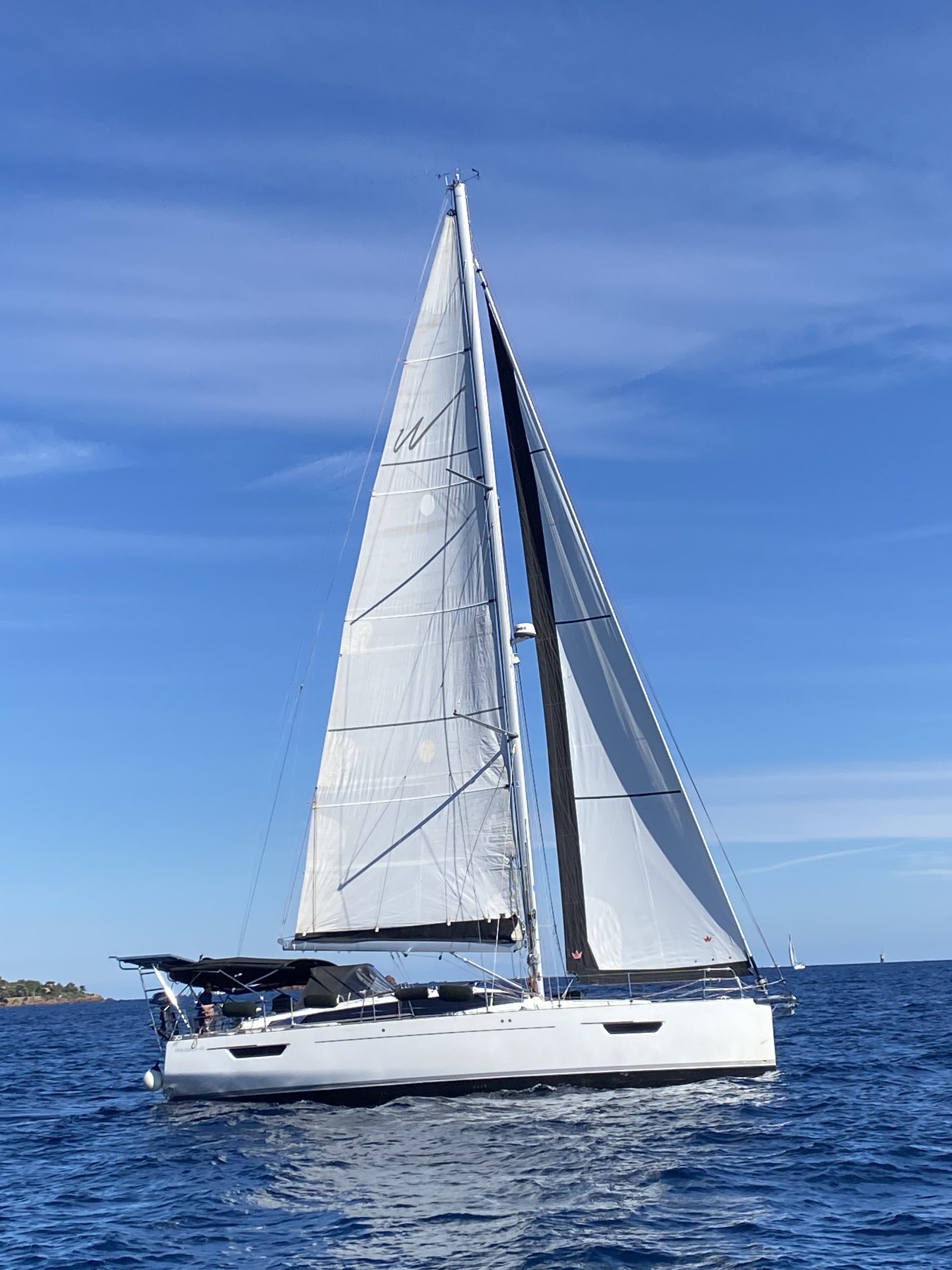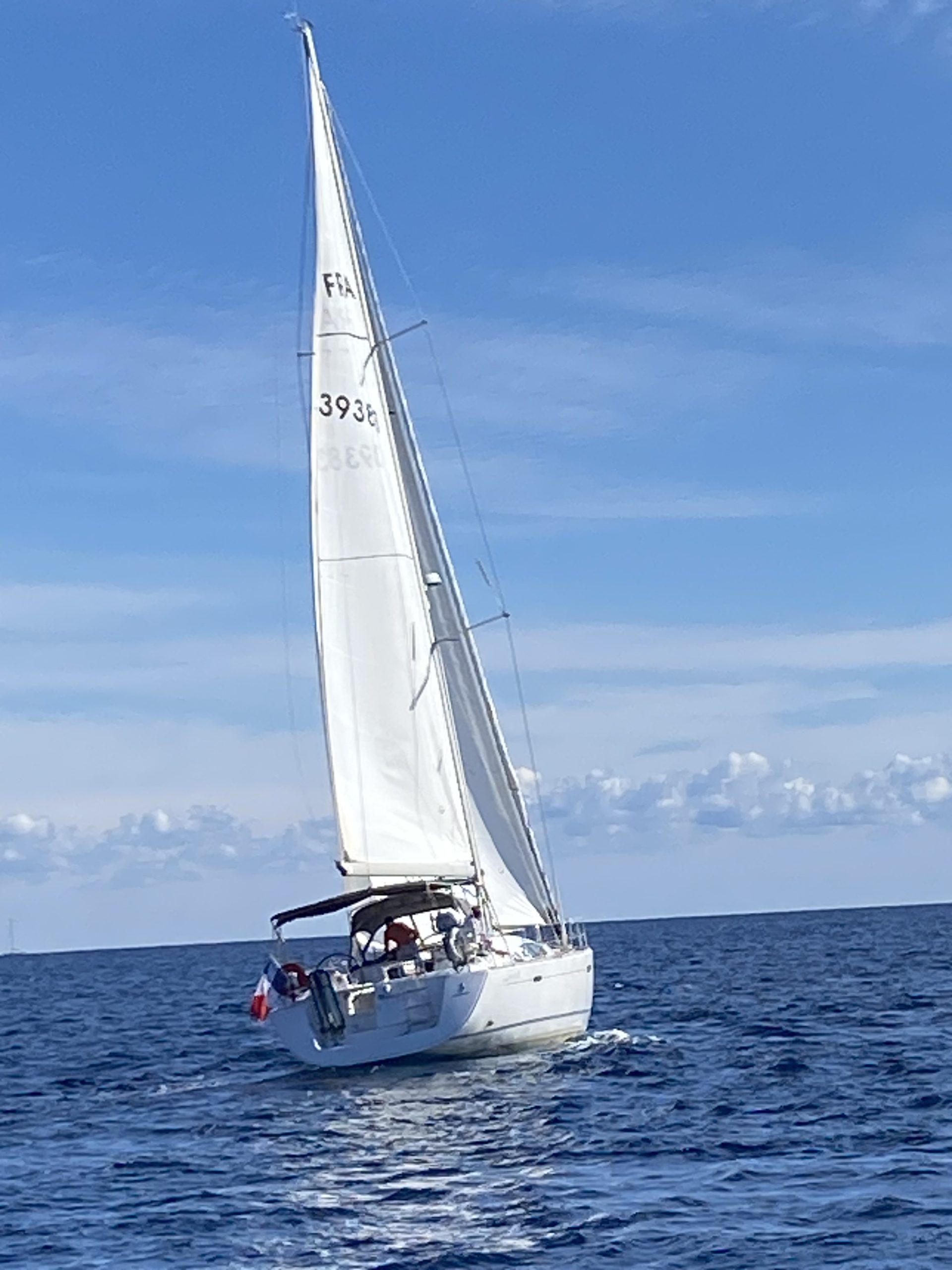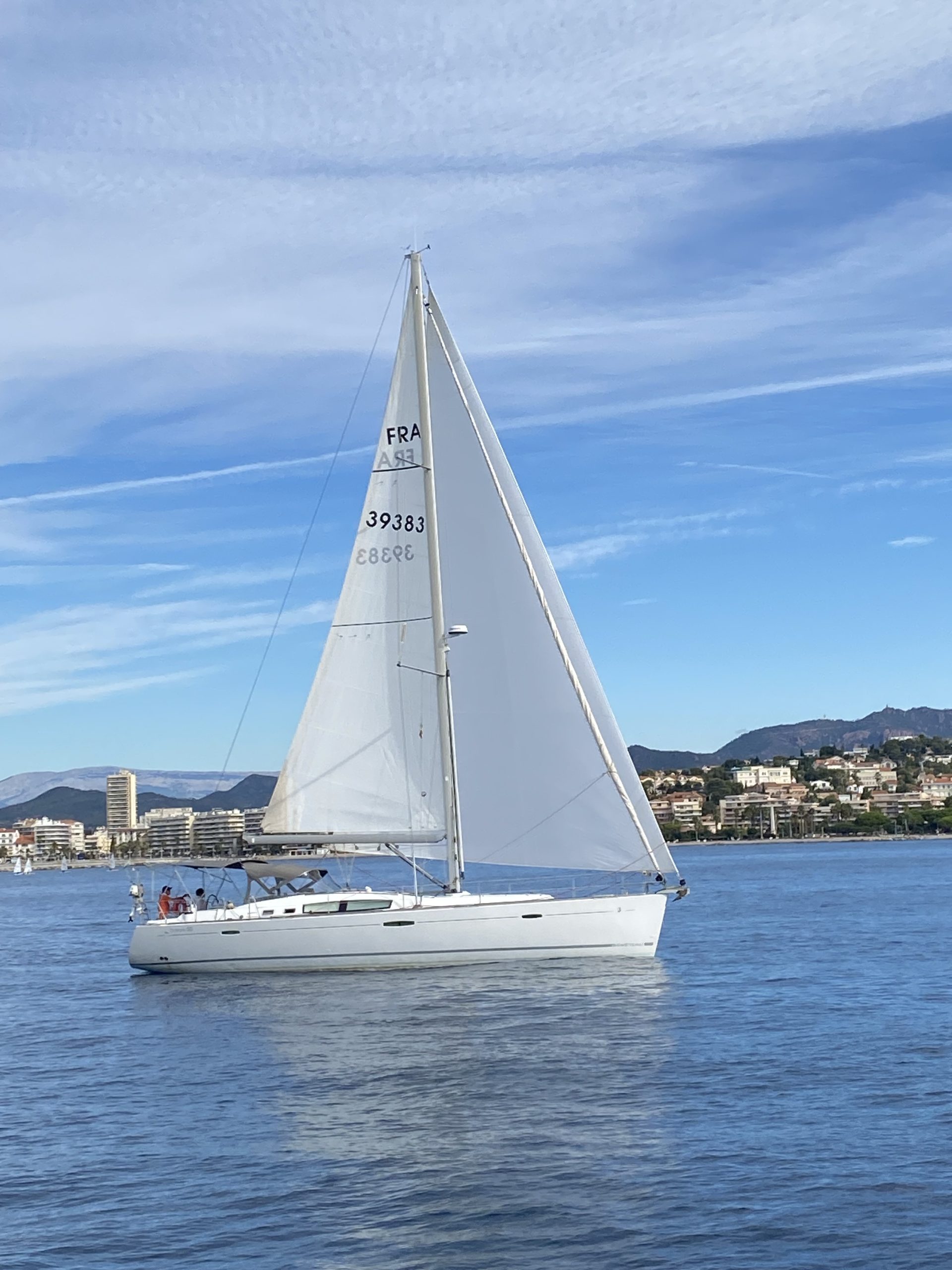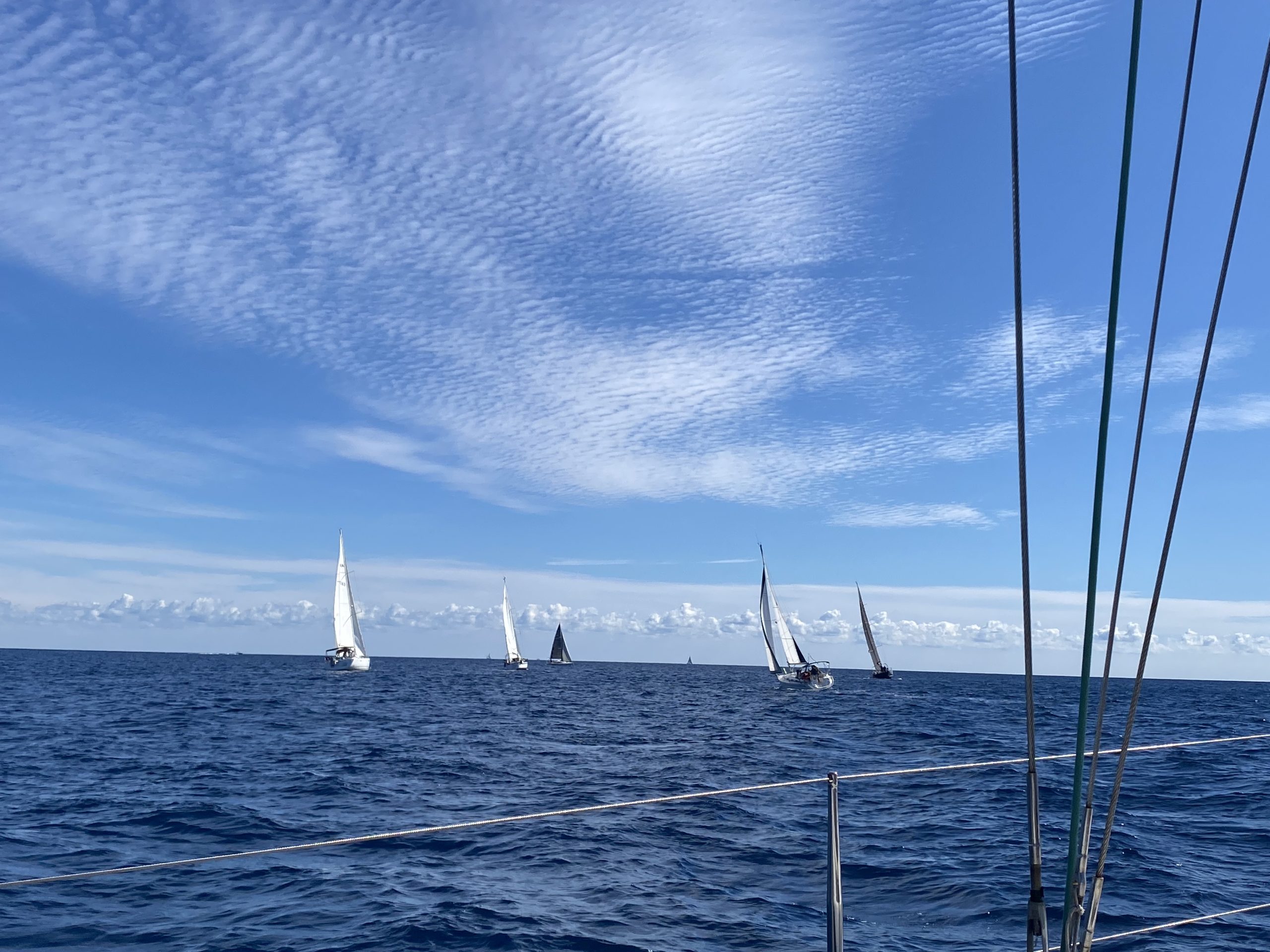 Ce ne fut pas le cas cette année. Un très beau temps le samedi pour la régate avec un départ sous « le soleil exactement » mais sans vent. Nous avons renoué avec la tradition du passé puisque nous nous sommes dirigés très tranquillement vers la rade d’Agay où les mouillages nous étaient personnellement réservés. Merci à la capitainerie de la rade pour leur accueil très sympathique. 9 bateaux inscrits, 1 DNS et pour cette première manche seul Pili-Pili est resté sous voiles hautes. Les autres ont dû s’accommoder du moteur pour arriver à l’heure au pique-nique.